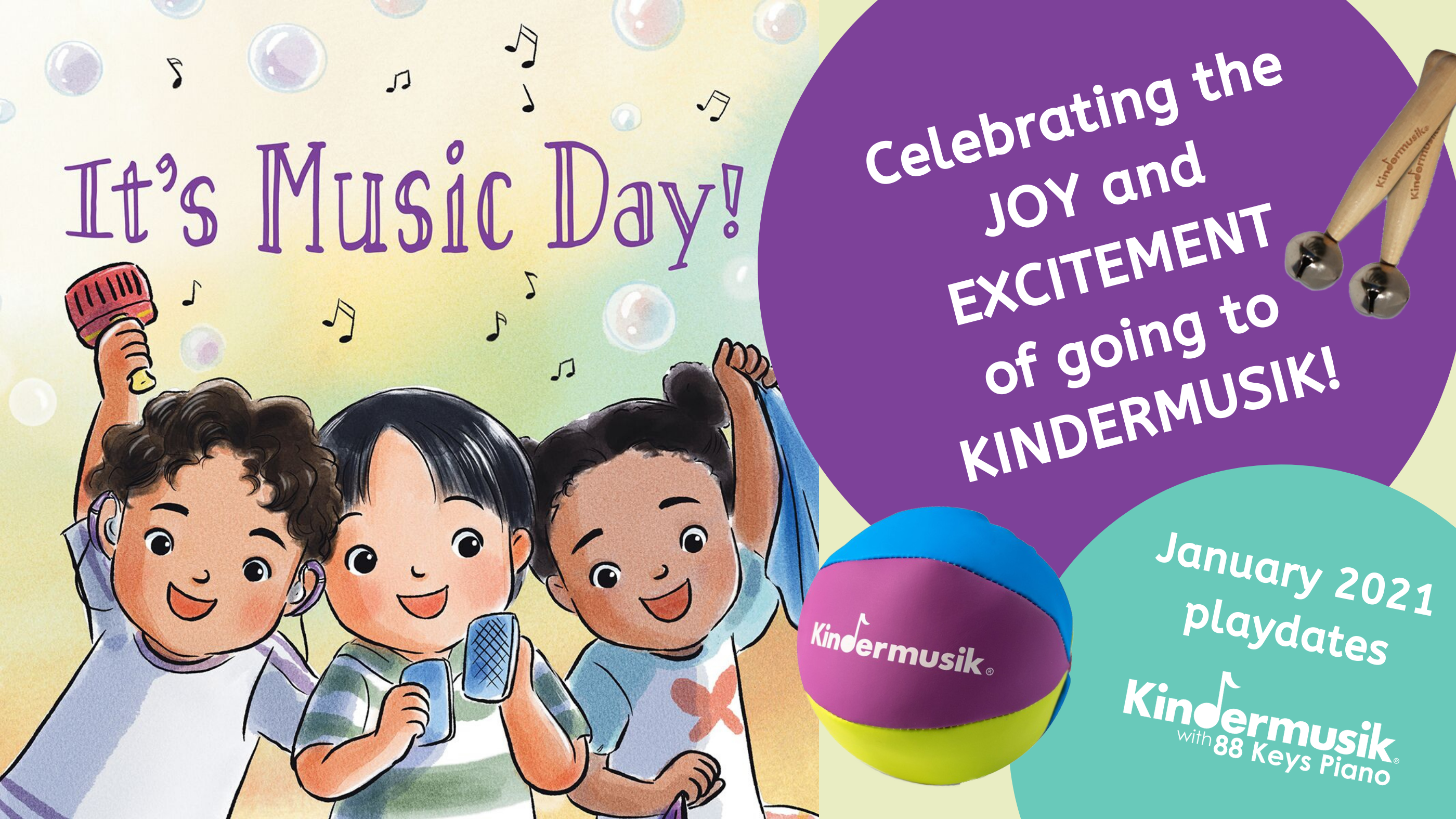 How does your child react when you tell them you’re going to Kindermusik? Their face probably lights up, their eyes sparkle, they clap and squeal with excitement! In our January playdates, we’re exploring the adventures of a typical child enjoying a super-fun day at Kindermusik! Our engaging songs, instruments, stories, dances, and movement activities will all focus around the highlight of every child’s week! If your child is a Kindermusik lover, don’t miss this exciting playdate: It’s Music Day!